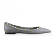 Women's flat pointed rivet single ballet shoes スタッズ&カラーストーン付フラットペッタンシューズプラスサイズあり