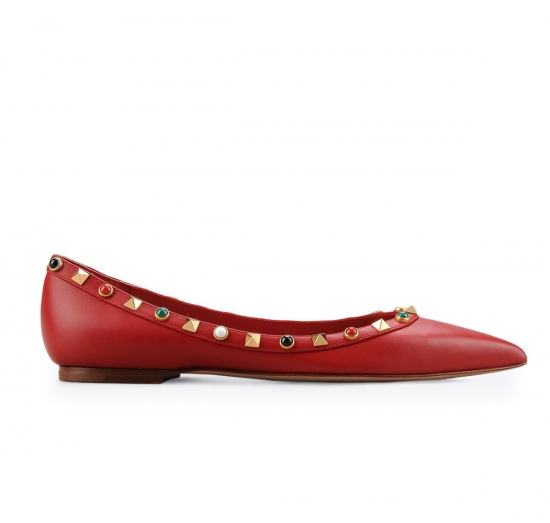 スタッズカラーストーンが付いたオシャレなフラットパンプス