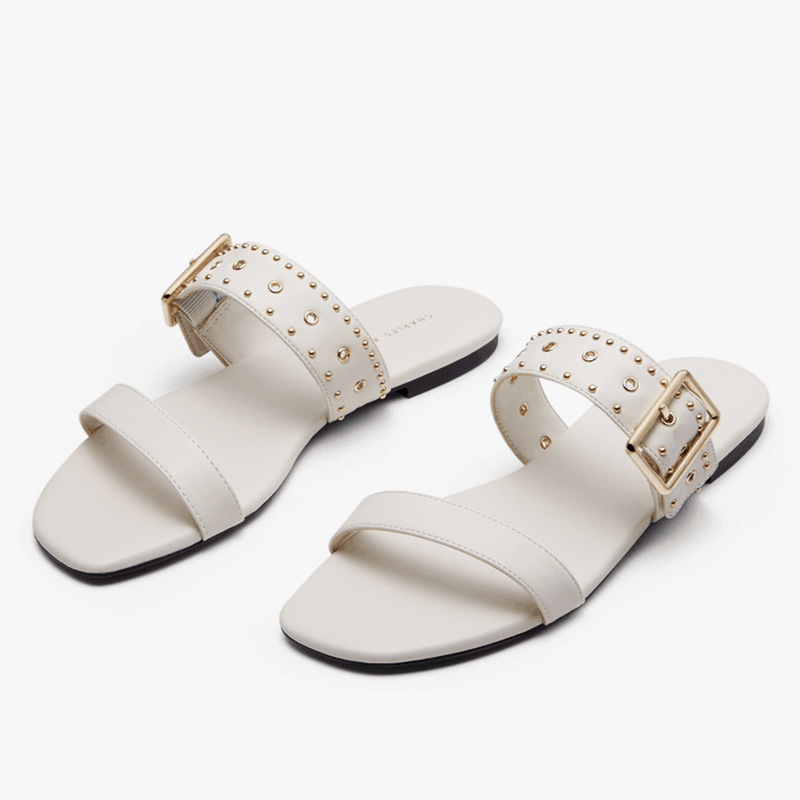 Women rivet decoration ladies flat sandals slippers レザースタッズ付きフラットサンダル スリッパ