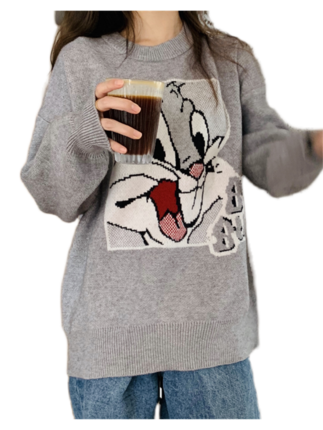 Women's Bugs Bunny braid pullover sweater round neck loose sweater knit バックスバニー編み込みプルオーバーセーター セーターニット