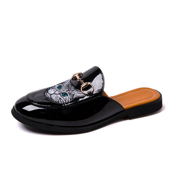 British Emblem bit moccasin slip on loafers shoes メンズ イギリス調 キャラクターモチーフ ブリティッシュ オープンバック スリッポン スリッパ ローファー