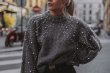 フェイクパール付ハイネックニット