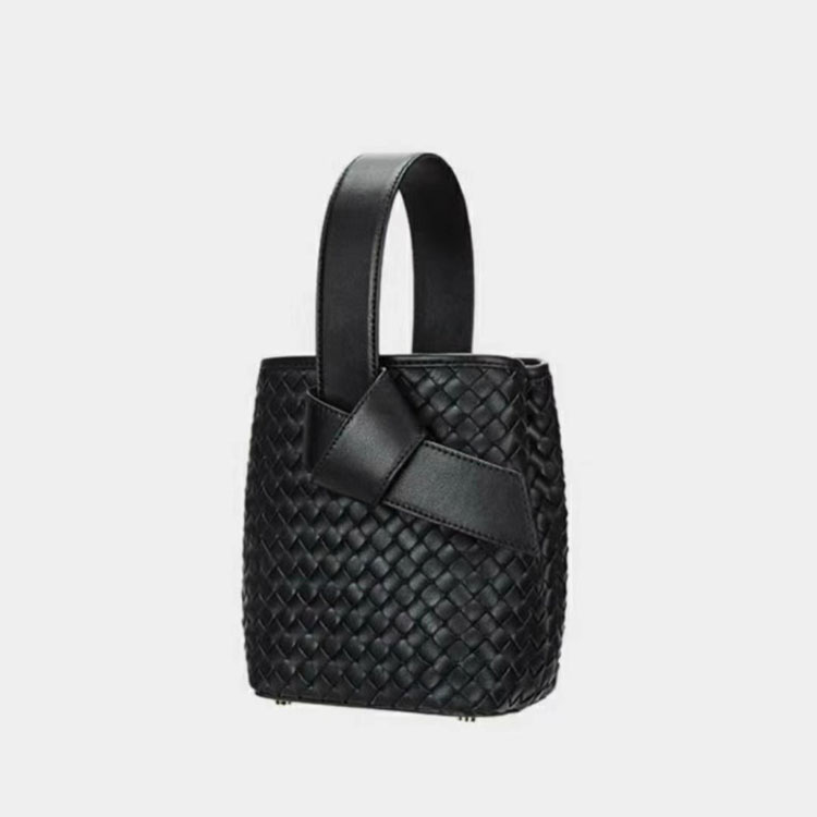 Woman’s woven lace-up portable bucket bag レザーメッシュポータブルバケットバッグトートバッグ