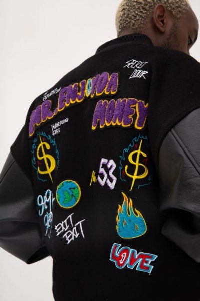 BIG M JACKET high street loose badge flocking letter profile baseball cotton padded jacket men and women Stadium jumper ユニセックス 男女兼用レター刺繍付きユニフォームスタジアムジャンパー ジャケット ブルゾン スタジャン