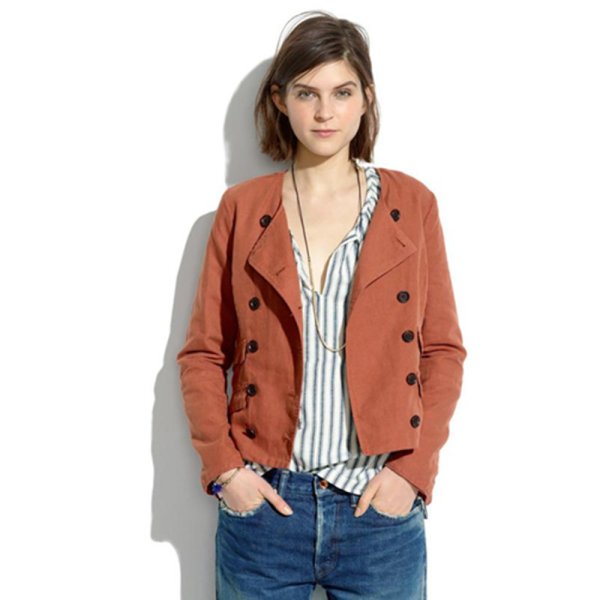 ラウンドネックダブルブレストジャケット ブレザー