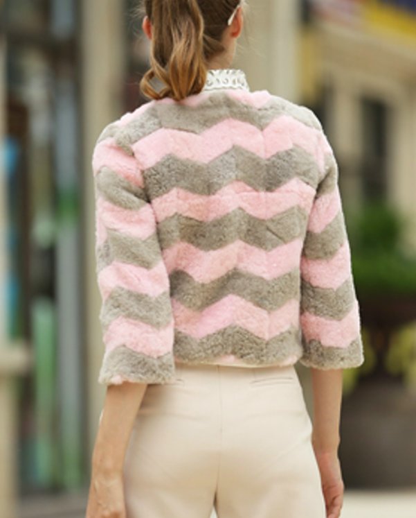 シープスキンバイカラー7分丈袖ジャケット ショートコート プラスサイズあり