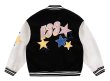 alphabet & star embroidery PU leather sleeve BASEBALL JACKET baseball uniform jacket blouson ユニセックス 男女兼 アルファベットロゴ&スター刺繍 エンブレム レザースリーブ ヒップホップ スタジアムジャンパー スタジャン MA-1 ボンバー ジャケット ブルゾン