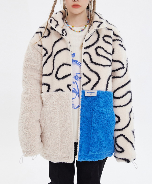 original color matching lamb velvet striped thick coat jacket blouson ユニセックス 男女兼用マッチングラム ベルベットストライプコート ジャケット