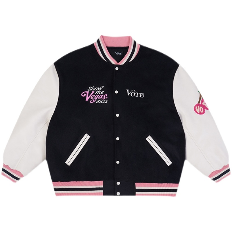VOTE21Cherry applique embroidery BASEBALL JACKET baseball uniform jacket blouson ユニセックス 男女兼用VOTE21チェリー刺繍スタジアムジャンパー スタジャン MA-1 ボンバー ジャケット ブルゾン
