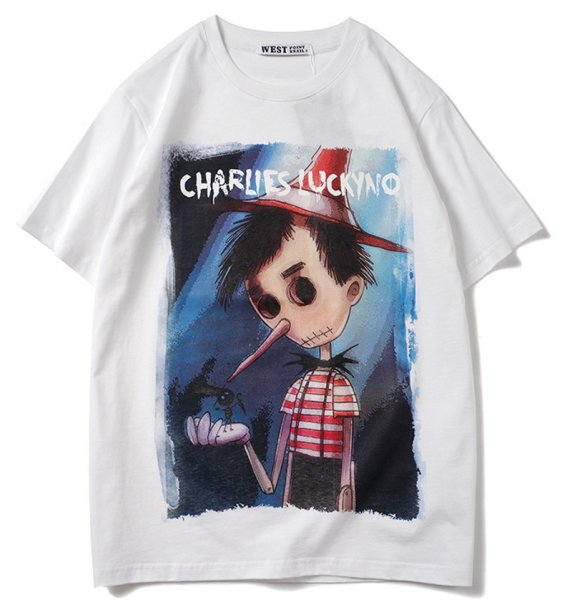 Melancholy Pinocchio print T-shirt ユニセックス 男女兼用憂鬱ピノキオプリントTシャツ