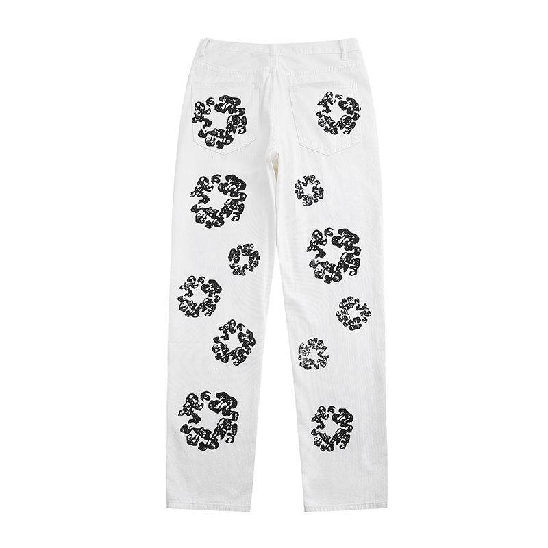 Unisex kapok print graffiti high street straight jeans denim Pants ユニセックス男女兼用 ヴィンテージカポックプリントグラフィティワイドストレートデニムジーンズパンツ