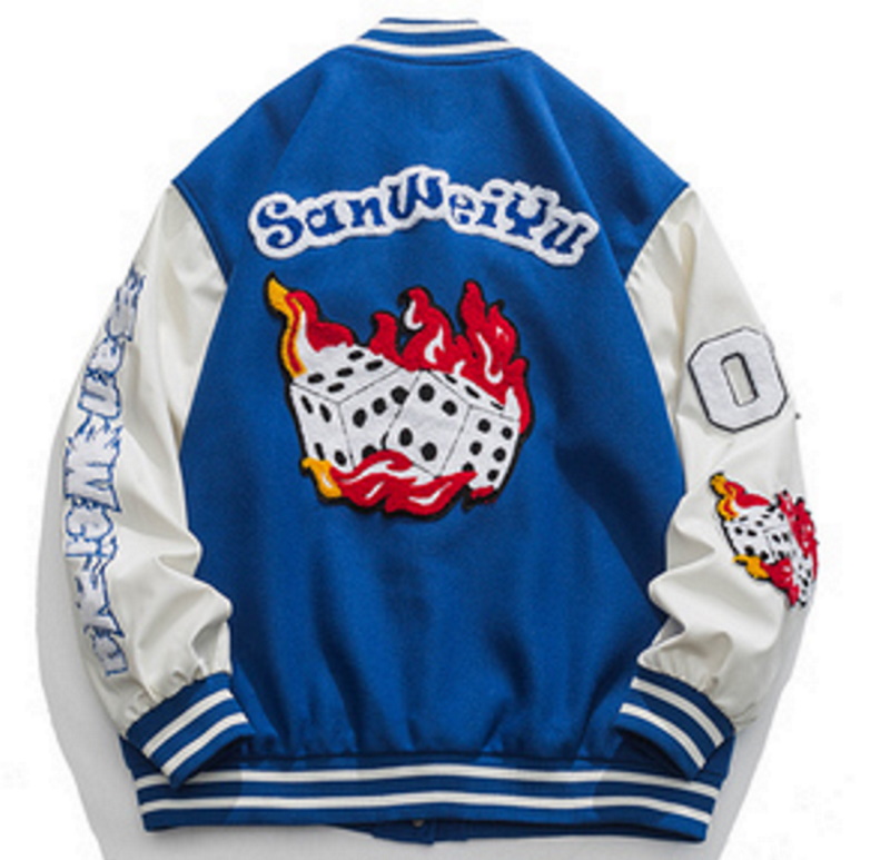 Fire dice embroidery emblem baseball uniform BASEBALL JACKET blouson ユニセックス 男女兼用ファイアーダイス サイコロ刺繍エンブレムスタジアムジャンパー スタジャン MA-1 ボンバー ジャケット ブルゾン