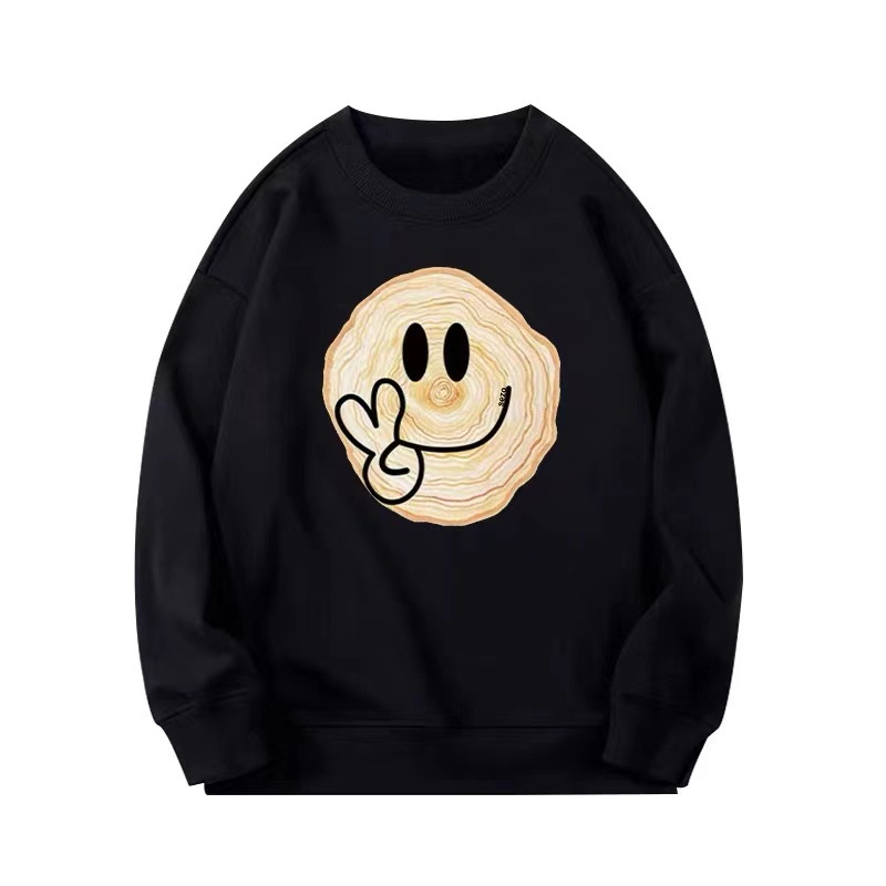 tree ring smile print sweatshirt pullover round neck trainer ユニセックス男女兼用年輪ツリーリングスマイルラウンドネックスウェットプルオーバートレーナー