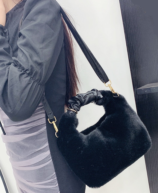 imitation mink fur pleated handle bag Fur tote shoulder hand bag プリーツハンドルファートートショルダーバッグ