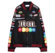 M&M & emblem embroiderybaseball uniform jacketHip Hop JacketBASEBALL JACKET blouson ユニセックス 男女兼用M&M&エンブレムカラフル刺繍ジャケットスタジアムジャンパー スタジャン MA-1 ボンバー ジャケット ブルゾン