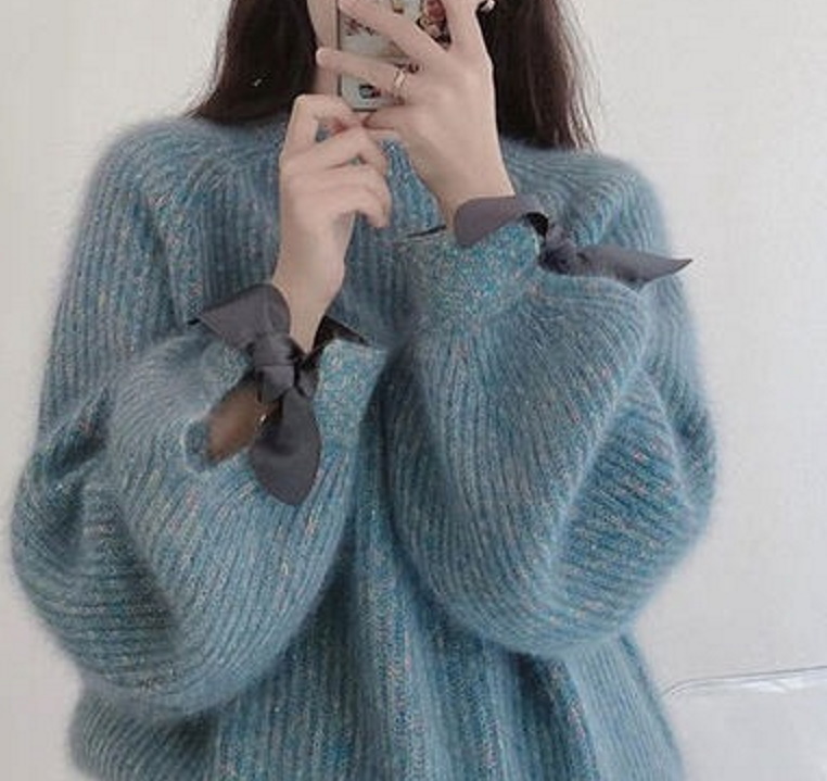 sleeve length ribbon sweater 袖口リボンがポイント丸首ラウンドネックセータープルオーバ
