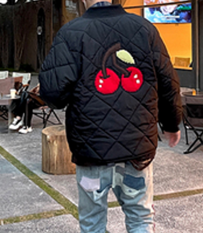 BCBW "Cherry cotton-paddedjacket baseball uniform jacket blouson ユニセッ クス男女兼用チェリー刺繍キルティングジャケットスタジアムジャンパー スタジャン ブルゾン