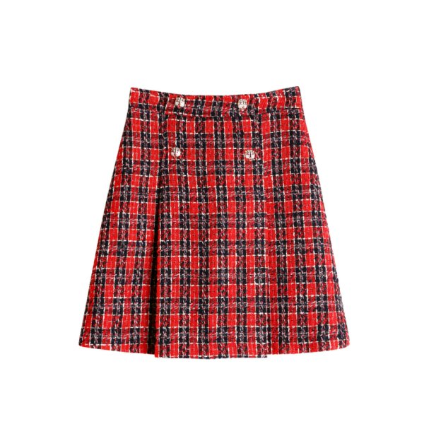 Women's Tiger Button Tweed A-Line Skirt タイガー虎ボタン付きツイードスカート