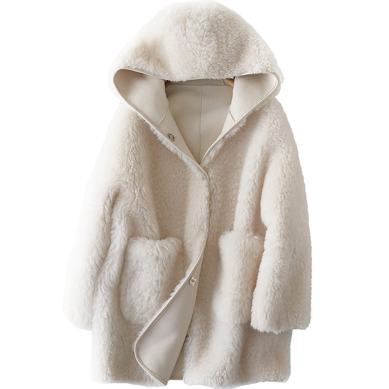 Haining sheep shearing fur hoody coat Jacketシープスキンフーディージャケット コート