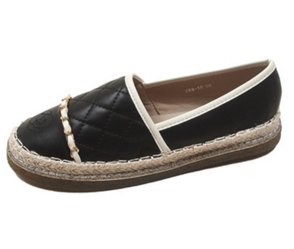 women's quilting camellia embroidery espadrille slip-on flat shoes Pumps キルティングレザーカメリア刺繍フラットエスパドリーユパンプス