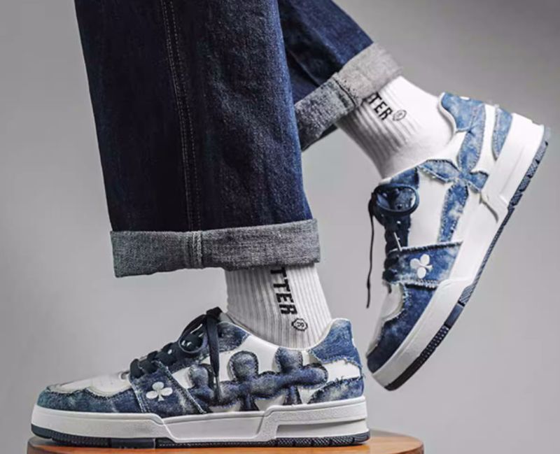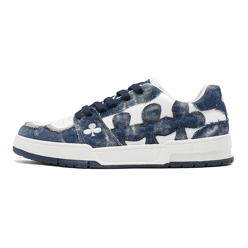 Denim & leather clover embroidery lace-up sneakersは、スタイリッシュかつトレンディなデザインが特徴の男女兼用のスニーカーです。デニムとレザーの組み合わせで、高品質の素材を使用しており、耐久性と快適性を兼ね備えています。さらに、クローバーの刺繍が施されており、個性的な印象を与えます。サイズは39-44まで展開しており、幅広い足の形に対応しています。日常のカジュアルなコーディネートにぴったりなアイテムであり、アクティブなライフスタイルに合わせて活躍することができます。