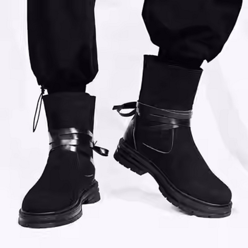 このブーツは、ユニセックス男女兼用のレザーストラップブリティッシュマーティンハイカットブーツです。英国スタイルのチェルシーブーツとストラップを組み合わせ、クラシックでエレガントなデザインとなっています。絶妙なバランス感と高級感溢れるクオリティが魅力です。