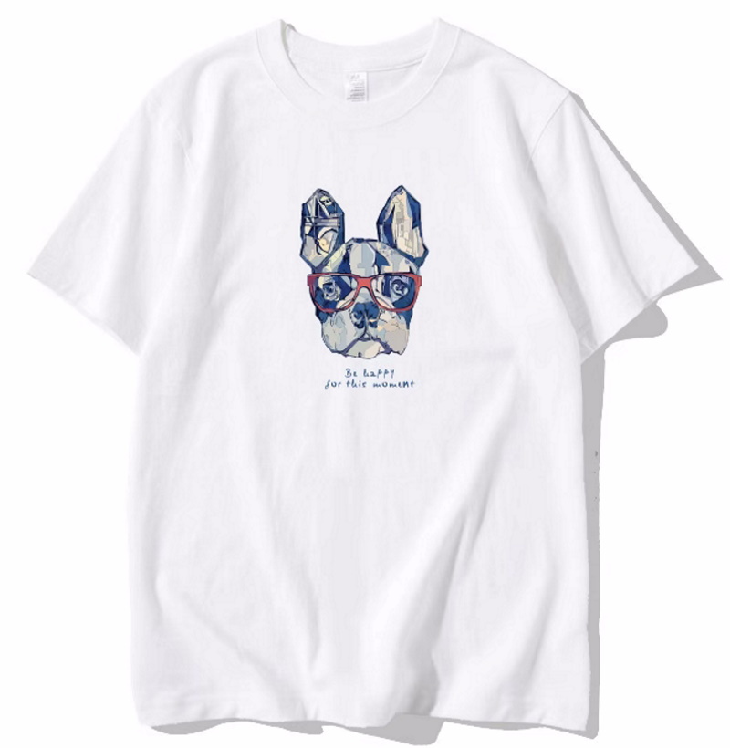 glasses dog print Short Sleeve T-shirt ユニセックス男女兼用メガネグラスドッグプリント半袖Tシャツ