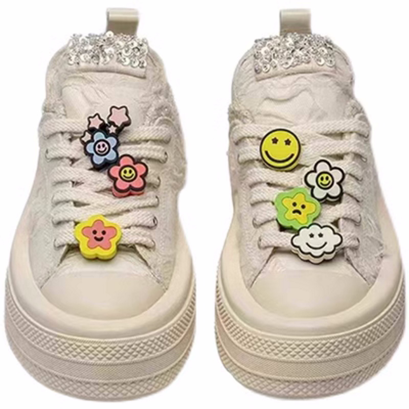 このダメージ風キャラクターキャンバス厚底プラットホームレースアップスニーカーは、日常のカジュアルな着こなしにアクセントを加え、個性的でスタイリッシュな印象を与えます。履き心地の良さとデザイン性を追求した一足で、幅広い場面で活躍します。是非、手に入れて自分の個性を表現してください。