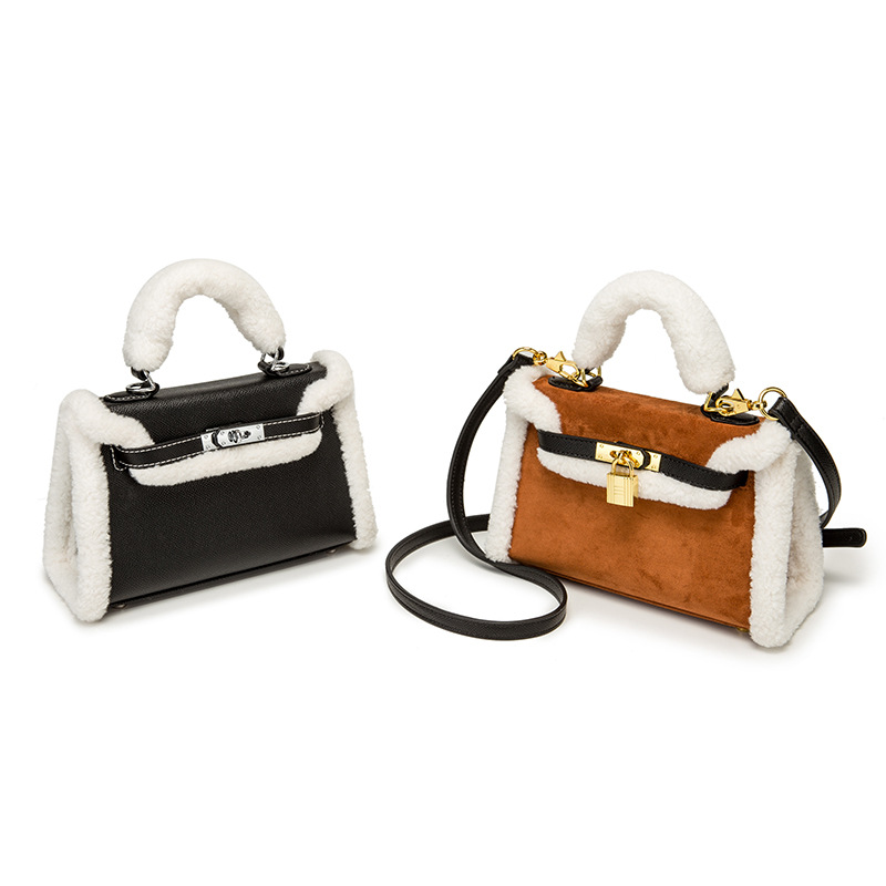 Women K style Handbag Shoulder bag with Fur design レディース ファーデザイン ハンド ショルダー ストラップ付 バッグ