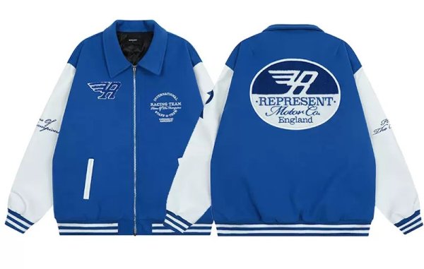 unisex REPRESENT embroidery baseball uniform jacket blouson Stadium jumper ユニセックス 男女兼用モーターカー刺繍 スタジアムジャンパー スタジャン MA-1 ボンバー ジャケット ブルゾン