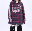 red plaid long-sleeved shirt ユニセックス男女兼用3ラインチェック長袖シャツ