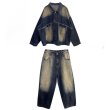 Unisec Men's Sand cut maxi wide denim Jacket and pants set メンズ ユニセックス 男女兼用 サンドウォッシング デニム トラッカージャケット & ワイドデニムパンツ セットアップ